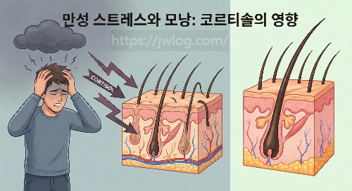 특히 탈모 관리를 위해 약을 먹거나 모발 이식을 고려하는 분들이라면, 반드시 '코르티솔'이라는 호르몬을 이해해야 합니다. 아무리 좋은 영양제를 먹어도 이 호르몬이 과다하면 밑 빠진 독에 물 붓기가 될 수 있기 때문입니다. 만성 스트레스가 어떻게 모낭을 공격하고, 소위 말하는 '휴지기 탈모'를 유발하는지 알아보겠습니다.