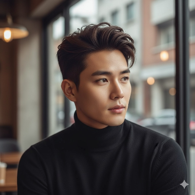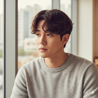 M자 라인을 어설프게 가리는 것보다 당당하게 드러내는 것이 훨씬 세련된 이미지를 줍니다. 아이비리그 컷은 M자 라인을 의도적으로 노출시키되, 앞머리를 위로 강하게 세워 시선을 위로 솟은 앞머리로 집중시킵니다. 이때 M자 양 끝의 모발을 살짝 옆으로 넘겨 빈 공간을 자연스럽게 채우는 것이 핵심입니다.